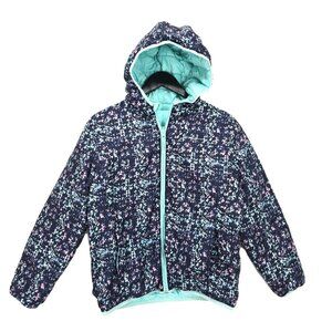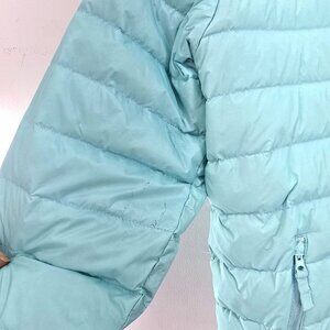 Eddie Bauer REVERSIBLE Soft Aqua Navy Down Winter Puffer Jacket Girls Size 14/16