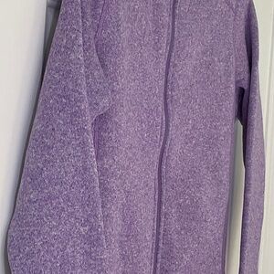 This beautiful lilac color fleece is a fantastic color for wearing with jeans. Misses size Large. Approx measurements are length 24.5 inches, sleeves 24.75 inches, and chest 20 inches. New with tags.