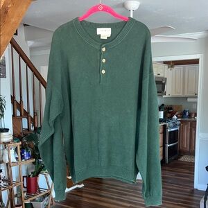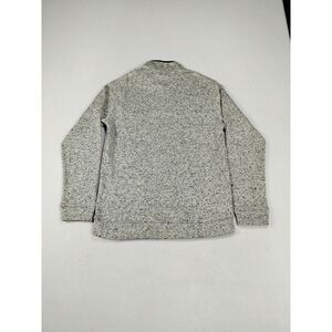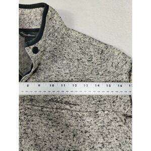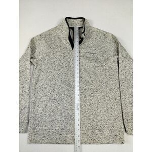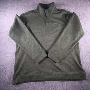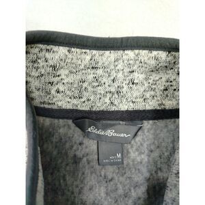Introducing the Eddie Bauer Radiator Fleece, a versatile and stylish sweater perfect for any occasion. With a solid pattern and tight-knit fabric, this sweater features a mock neck, long sleeves, and a button-up front. It comes in a size medium, and is machine washable for easy care.