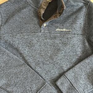 Eddie Bauer Radiator Fleece Pullover Sweater 1/4 Snap Navy Heather Size L Casual
