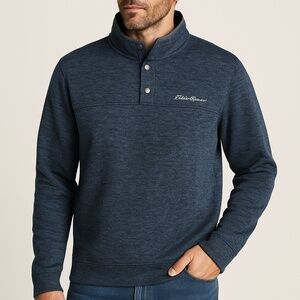 Eddie Bauer Radiator Fleece Snap Pullover Mock Neck — Men’s XL Blue Heather