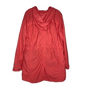 Eddie Bauer Rain Jacket Women XL Red Hooded Long Sleeve Pockets Zip Snap Front