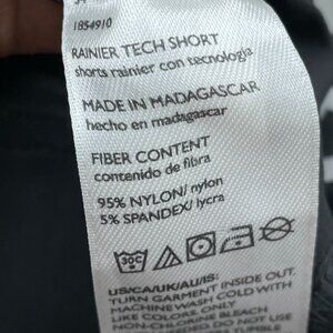 Durable yet lightweight tech shorts with stretch fabric, belt loops, and zippered pocket perfect for comfort and function. Waist measures approximately 34 inches laid flat.