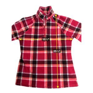 Eddie Bauer Red Plaid Half Zip Sweater Fleece Pullover Womens Size Small Winter
