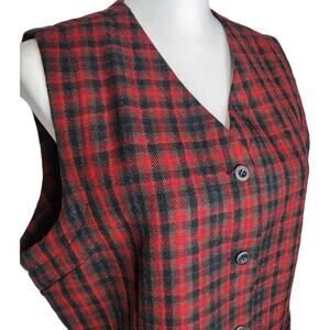 Eddie Bauer Red Plaid Wool Vest Size L