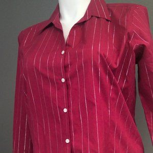Eddie Bauer Red Striped Shirt Long Sleeve Button Up Women's XL
