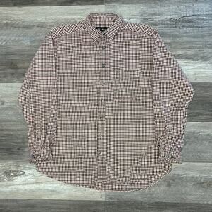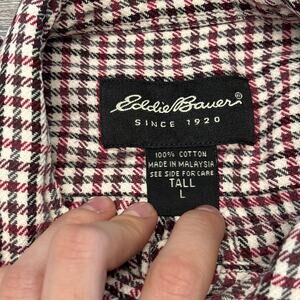 Eddie Bauer Red White Mens L Tall Woven Gingham Check Woven Flannel Shirt