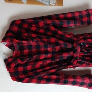 Eddie Bauer Red and Black Plaid Fleece Kids Robe