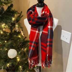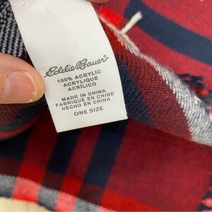 Eddie Bauer Red blue Plaid Firelight Scarf large warm cozy scarf unisex