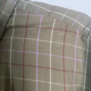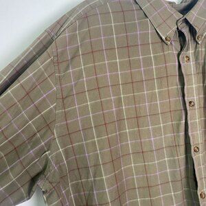 Eddie Bauer Relaxed Fit Plaid Button-Up Shirt XXXL Tall 100% Cotton Olive & Purple