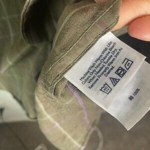Eddie Bauer Relaxed Fit Plaid Button-Up Shirt XXXL Tall 100% Cotton Olive & Purp