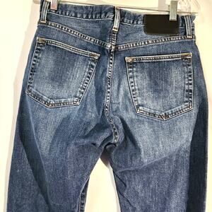 These Eddie Bauer jeans offer a relaxed fit with a classic straight leg design. The medium wash and stretch fabric ensure both style and comfort. In very good pre-owned condition, these jeans are perfect for everyday wear.