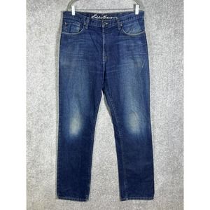 Eddie Bauer Relaxed Straight Leg Jeans Mens 36x36 36T Distressed Blue Denim