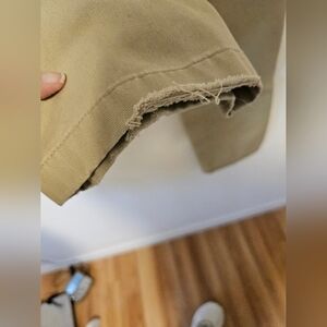 Early 2000's Style Khaki pants with the Thick hem one the pant legs. Bottom of pantlegs have some wear on them as seen on picture. Appears to not be a true 32 Length, Maybe 30-31. 100% Cotton