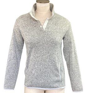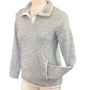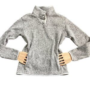 Eddie Bauer S Fleece Snap Mock Neck Pouch Pocket Sweater/Sweatshirt Gray 130Q
