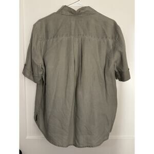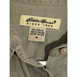 Eddie Bauer SS Button Down 100% Linen Sz M Blue Gray LagenLook Gorpcore Camp
