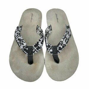 Eddie Bauer Sandals Women's Sz 11 Thong Flip Flop Slip On Canvas Black/White