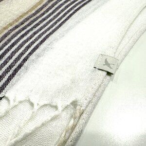 Eddie Bauer Scarf in White, Purples, and Tan with Fringe 24 x 71 inches