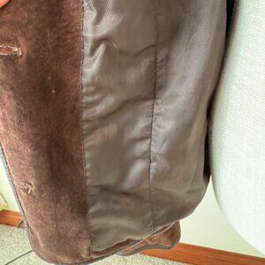 Brown suede heritage equestrian vintage jacket. Beautiful dark brown piping and 5 brown button detail for a tailored Western look.