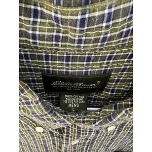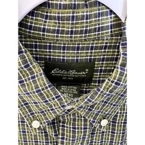 Eddie Bauer Seersucker Button Down Shirt Mens Large Plaid Short Sleeve Pocket