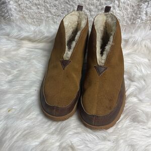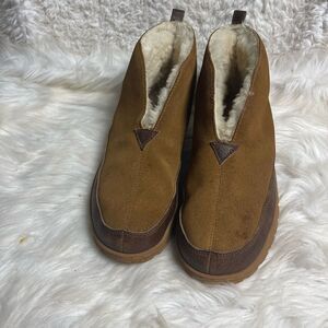 Eddie Bauer Shearling brown boots sleepers leather brown trims size 11