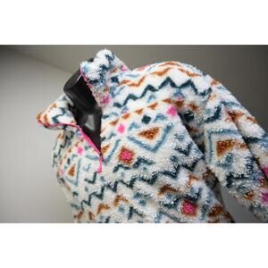 Eddie Bauer Sherpa Sweater Fleece Tribal Aztec 1/4 Zip Womens Size Medium
