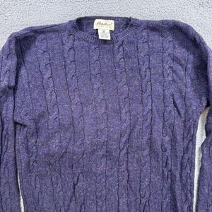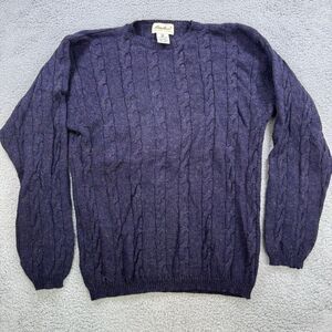 Eddie Bauer Shetland Wool Sweater Mens M Cable Knit Crew Neck Long Sleeve Purple