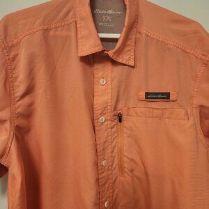 Eddie Bauer Shirt Button Up Outdoors Fishing Vented Orange Mens Large