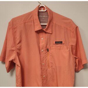 Mens Eddie Bauer Button Up Shirt Outdoors Fishing Vented Large Orange.