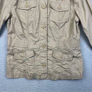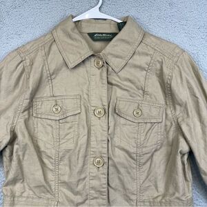 Eddie Bauer Shirt Jacket Womens Medium Beige Linen Blend Chore Field Outdoor