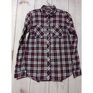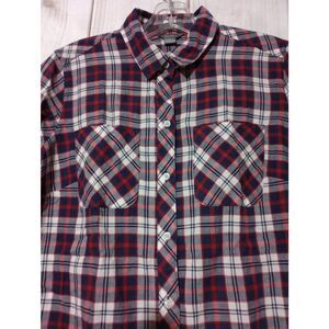 Eddie Bauer Shirt Ladies Small Navy Red Button Front