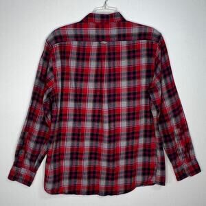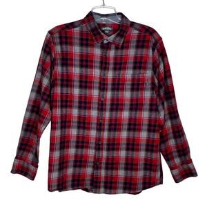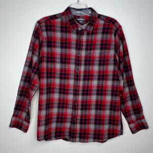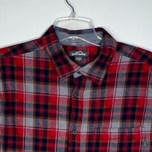 Eddie Bauer Shirt Men XLarge Red Gray Plaid Flannel Button Up Campcore Cabincore