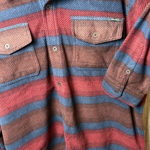 Eddie Bauer Shirt Men XXL Fleece Striped Button Up Outdoor Gorpcore Hiking Soft