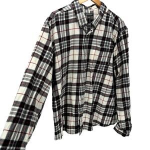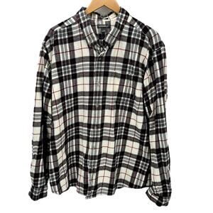 Eddie Bauer Shirt Mens 2XL Flannel Button Down Classic Fit Cream Black Red Plaid