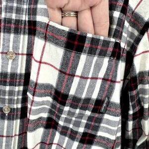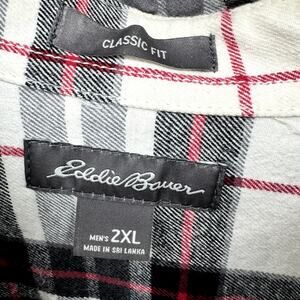 Eddie Bauer Shirt Mens 2XL Flannel Button Down Classic Fit Cream Black Red Plaid 100% Cotton Long Sleeve