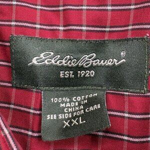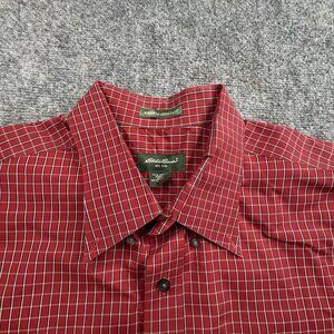 Eddie Bauer Shirt Mens 2XL XXL Red Plaid Wrinkle Resistant Button Down Dress