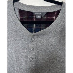 Eddie Bauer Shirt Mens Gray Buttons Henley Long Sleeve Casual Size Large