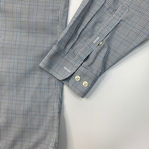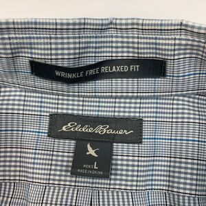 EDDIE BAUER SHIRT MENS L LARGE RELAXED FIT GREY BLUE COTTON PLAID WRINKLE FREE