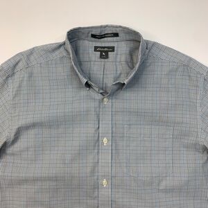 Eddie Bauer Shirt Mens L Large Relaxed Fit Grey Blue Cotton Plaid Wrinkle Free