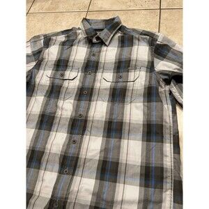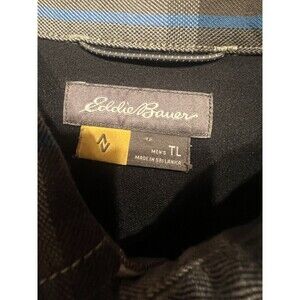 Eddie Bauer Shirt Mens L Tall Travex Flannel Grey Blue Plaid Button Up Casual