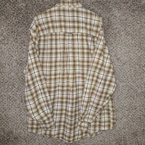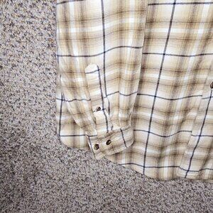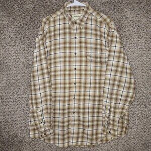 Eddie Bauer Shirt Mens Large Button Up Brown Plaid Flannel Cotton Pocket Casual