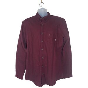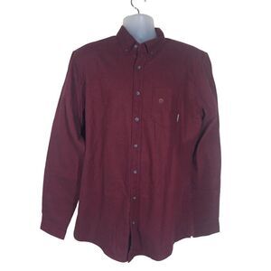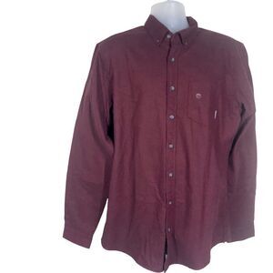 Eddie Bauer Shirt Mens Large Maroon Field Flannel Chore Ranch Work Button Down
