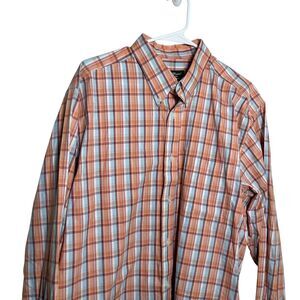 Eddie Bauer Shirt Men's Large Plaid Button Up Relaxed Fit Wrinkle Resistant