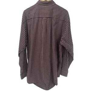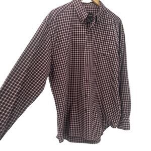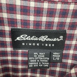 Eddie Bauer Shirt Mens Large Plaid Maroon Blue Cotton Button Down Vintage