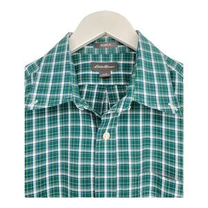 Eddie Bauer Shirt Mens Medium Green Plaid Long Sleeve Button Down Cotton