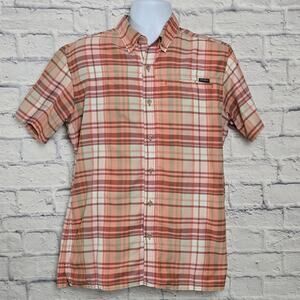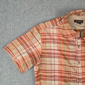 Eddie Bauer Shirt Mens Size Medium Short Sleeve Button Down Peach color Plaid
