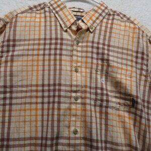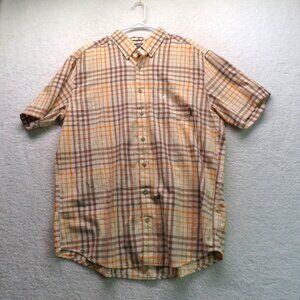 Eddie Bauer Shirt Mens Size Tall Extra Large Plaid Orange Brown Short Sleeve