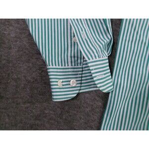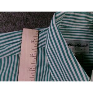 Eddie Bauer Shirt Mens Small Green White Striped Classic Everyday Office Outdoor