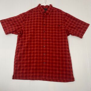 Eddie Bauer Shirt Men's Size Tall Large Red Short Sleeve Plaid VTG Hiking Fishing