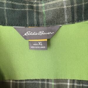 Eddie Bauer Shirt Mens XL Green Plaid Button Down Long Sleeve Outdoors Pockets
